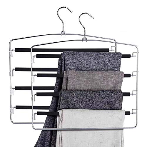 Ideal life 滑り止め 皺防止 クロゼット 収納 省スペース 4段 2本セット ブラック