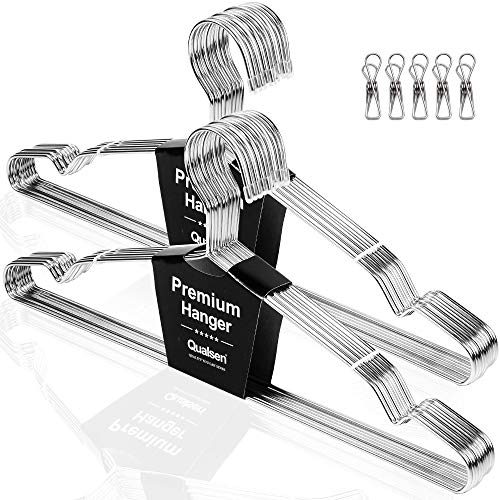 Qualsen ハンガー ステンレスハンガー 洗濯ハンガー 錆びにくい すべらない 曲がらない くぼみ付 耐久・頑丈 お