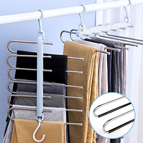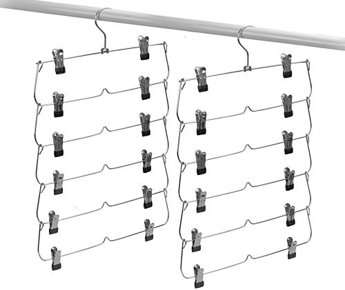 (MAO DOU)スカートハンガー ズボン 6段 スチール クリップハンガー 2セット ステンレス ハンガー 省スペース