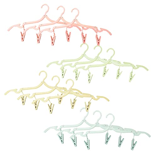 携帯用ハンガー 洗濯ハンガー 旅行 出張 折り畳み式 コンパクト 物干し ズレ防止 洗濯ばさみ付き (12本)