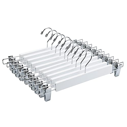 Amber Home 天然木製ズボンハンガー 10本組 ホワイト スカートハンガー パンツ ボトムス スラックス シューズ 衣