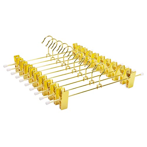 Amber Home ゴールドズボンハンガー 12本組 スカートハンガー スチールハンガー ボトムス パンツ スラックス タ