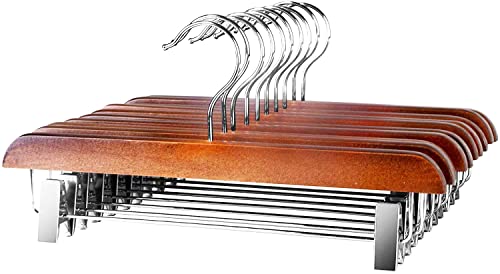 Amber Home 天然木製ズボンハンガー 10本組 ナチュラル色 スカートハンガー パンツ ボトムス スラックス シュー