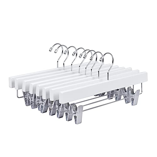 Amber Home 天然木製ズボンハンガー 10本組 ホワイト スカートハンガー パンツ ボトムス スラックス シューズ 衣