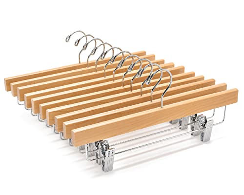Amber Home 天然木製ズボンハンガー 10本組 ナチュラル色 スカートハンガー パンツ ボトムス スラックス シュー