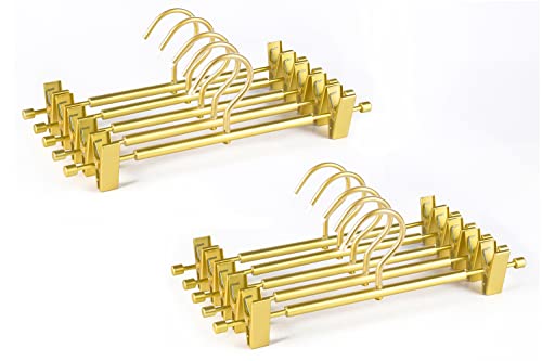 Amber Home 超軽いゴールドズボンハンガー 10本組 スカートハンガー ボトムス パンツ スラックス タオル用 金属