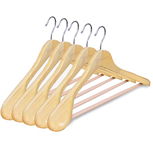 Qualsen 木製ハンガー 衣類ハンガー 洋服ハンガー 肩幅大きめ 滑り止め スーツ・洋服・ジャケット・コート用ハ