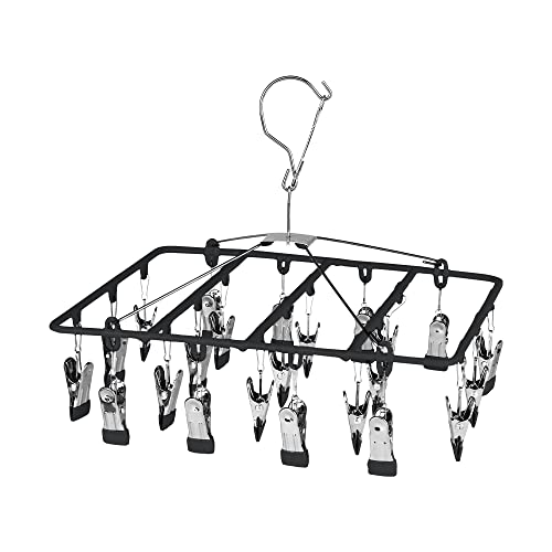 BETTERALL 洗濯室内物干し ピンチハンガー PVC滑り止めクリップ物干しラック かたくずれ防止 23ピンチ 黒