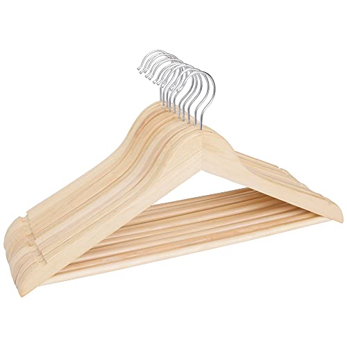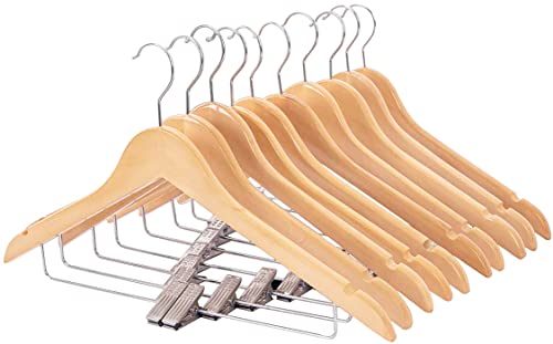 木製スーツハンガー クリップ付きハンガー 10本セット スーツ ジャケット コート用 手作 天然高級木 (ナチュ