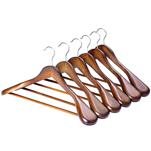 木製ハンガーセット 洋服 スーツ コート用ハンガー 手作 天然高級木 (胡桃色/6本)