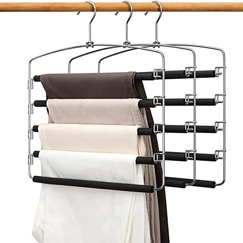 Hangerspcace ズボンハンガー ハンガー ステンレス すべらない 省スペース 3本組 スラックスハンガー ハンガー 収