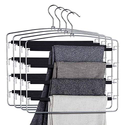 Ideal life 滑り止め ステンレス鋼 皺防止 クロゼット収納 省スペース 4段 4本セット ブラック