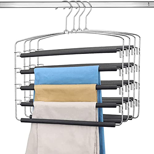 Hangerspcace ズボンハンガー スラックスハンガー パンツハンガー 4本組 ハンガー スカート 省スペース ステンレ