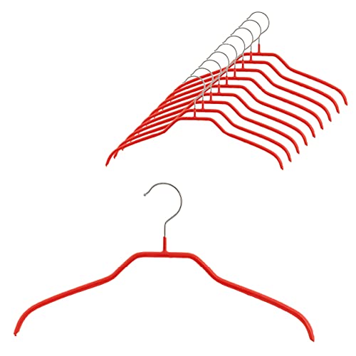 MAWA(マワ) ハンガー エコノミック40 (10本セット,レッド) スリム 薄型 省スペース 滑り止めコーティング 丸型ハ