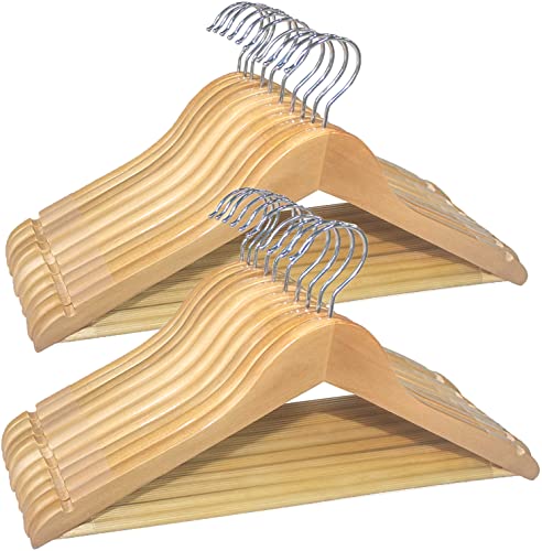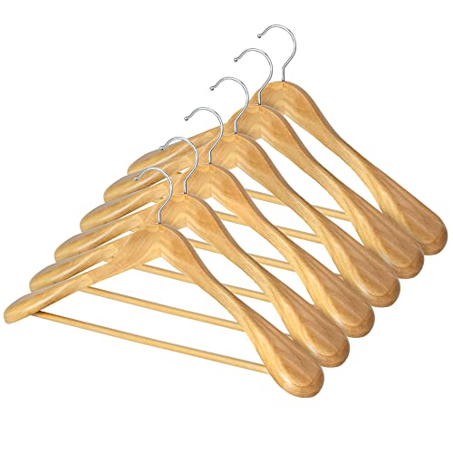 StorageWorks スーツハンガー 6本組セット 天然木製ハンガー 360度回転 バー付き 頑丈 ジャケット シャツ スーツ用