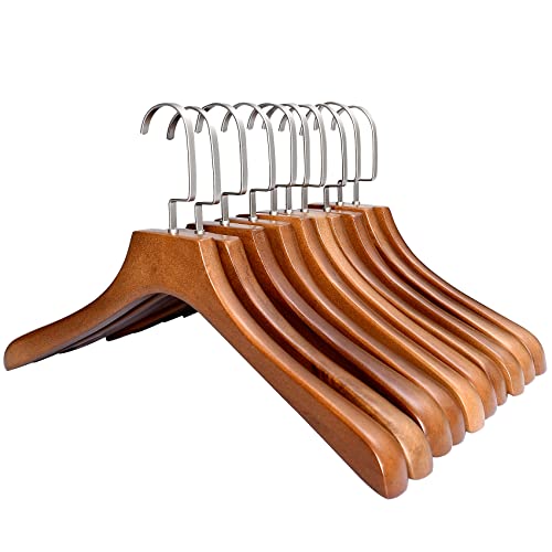 木製ハンガーセット 洋服 スーツ コート用ハンガー 手作 天然高級木 (胡桃色 10本)