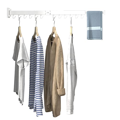 Homeme 洗濯物干し 室内物干し 耐荷重50KG 折りたたみ式 穴あけ 壁掛け 伸縮タイプ 隠し物干し 宇宙アルミ 物干