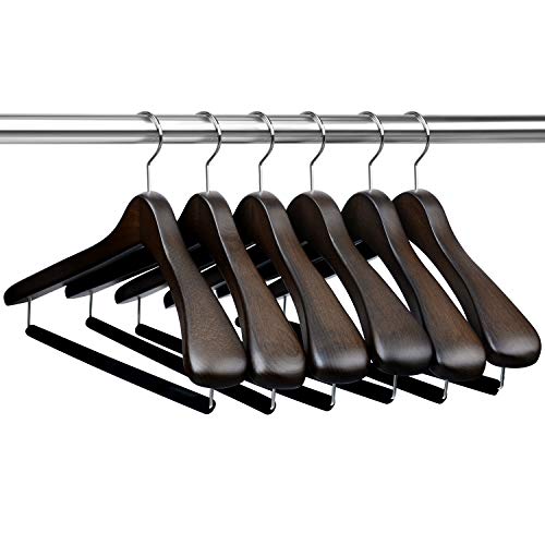 IEOKE ハンガー 木製 スーツハンガー スラックス用バー付 6本組 EK1080 (A) (A)