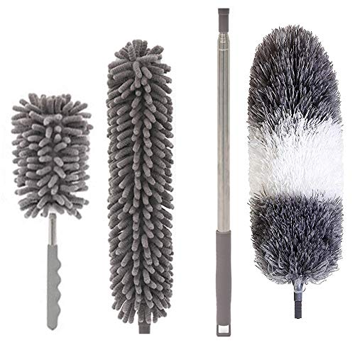 ホコリ取りブラシ 伸縮掃除モップ ZHIWHIS 252cmまで ステンレスロッド付き マイクロファイバー 洗いやすい 360°