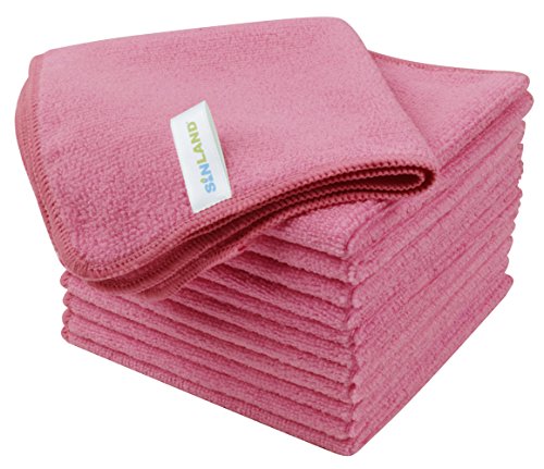SINLAND マイクロファイバー クリーニングクロス 業務用タオル キッチン 掃除 洗車 吸水 速乾 クロス 12枚入 ピ