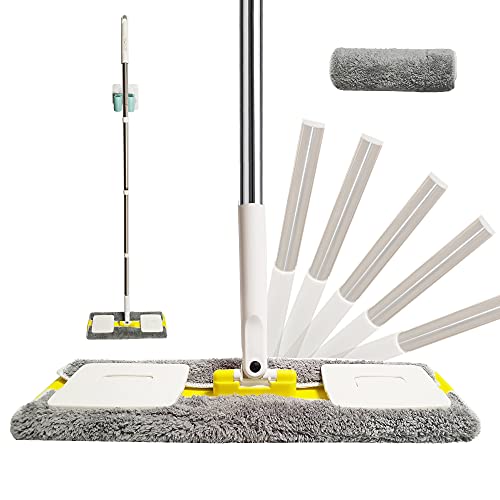 IZSOHHOME モップ ダストモップ マイクロファイバーモップ 回転フラットモップ ウェット&ドライ床掃除モップ 洗