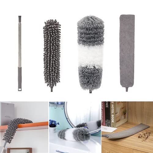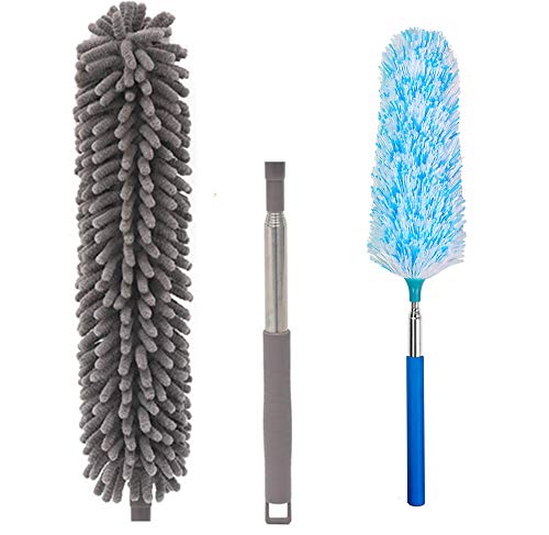 ホコリ取りブラシ 伸縮掃除モップ ZHIWHIS 130cmまで ステンレスロッド付き マイクロファイバー 洗いやすい 360°