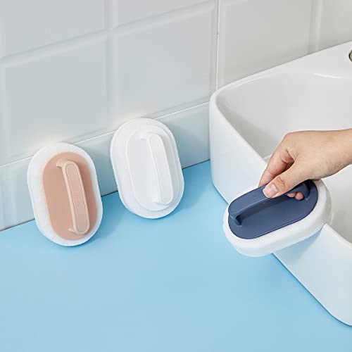 バスブラシ キッチンスポンジ ハンドル付き 手荒れ防止 付け替えスポンジ2個付き 軽量 クリーニングブラシ