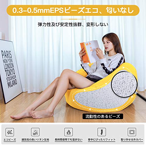 【自由にスタイルを作り、ゆったりと寛ぎます】:ビーズクッションはエコで健康的な直径0.3-0.5mmのEPSビーズで充填されています。極小のビーズは流動性と弾力性があります。座ると背中をしっかりと支え、体にピッタリフィットします。体をリラックスさせ、疲労を和らげることができます! 本を読んだり、テレビを見たり、パソコンで勤務したり、スマートフォンを弄ったり、寝転がったり、好きなように使えます。