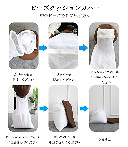 【座り心地良い】ソファーに座れば誰でもダメになり、一度座ると離れられなくなり、リラックスタイムに欠かせないビーズクッションです!絶妙なもちもち感のある座り心地を実現します。猫や犬も満足です!