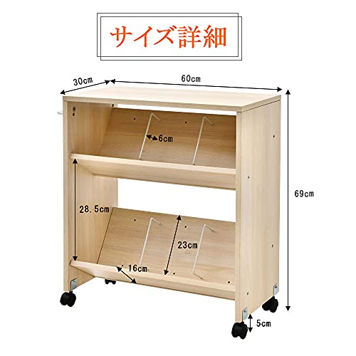 | 商品名 | 本棚 キャスター付き 低い ワゴン ファイルワゴン おしゃれ 2段 移動式 可動棚 幅60×奥行き30×高さ69cm スリム |