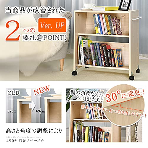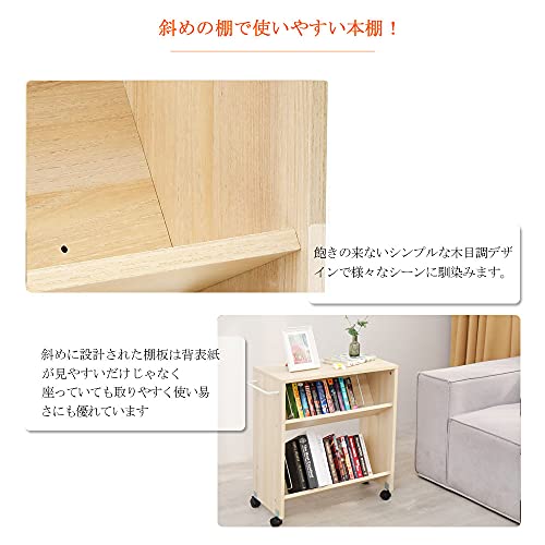本棚 キャスター付き 低い ワゴン ファイルワゴン おしゃれ 2段 移動式 可動棚 幅60×奥行き30×高さ69cm スリム