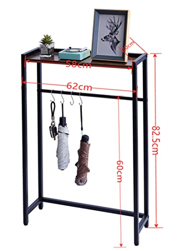 【コンソールテーブル仕様】:商品サイズ:約W62XD20XH82.5cm; 商品重量:約4kg; 内寸:約W58×D18×H80cm;品質表示:本体 : スチール(粉体塗装);天板 : 天然木化粧繊維板(ラッカー塗装);耐荷重:天板 :約30kg; バー ::約15kg;フック1つあたり :約3KG。