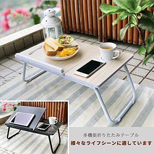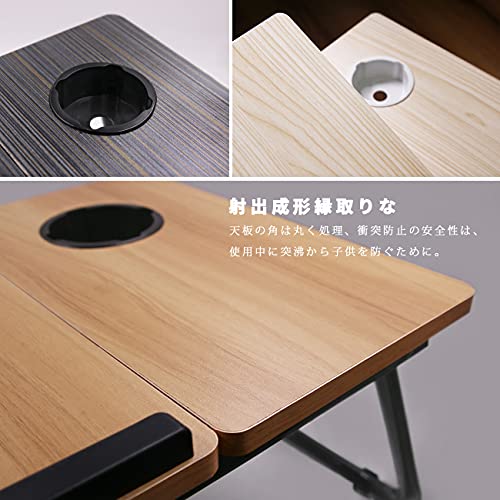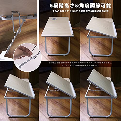 【2021年最新の5段階高さ&角度調節可能、カップホルダー付き】脚高さが12cm-18cm調節でき、天板の角度が0°から55°の範囲まで5段階に変換可能、落下防止のストッパー付き。自分楽な姿勢と好きな角度でノートパソコンやタブレットなど操作できて、デスクワークの肩凝りや疲労を和らげます。
