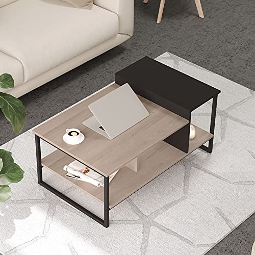 【おしゃれな設計】天板独特の階層設計で、より層付き感を与えます。他のコーヒーテーブルと比較して、デザインはより北欧でファッショです。