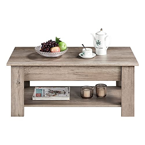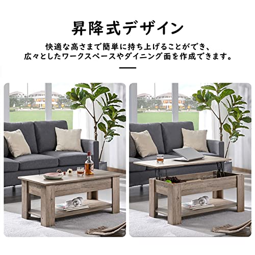 Yaheetech コーヒーテーブル 天板昇降式 ローテーブル 高さ調整 大容量 簡単開閉 パソコンテーブル 昇降式 木製