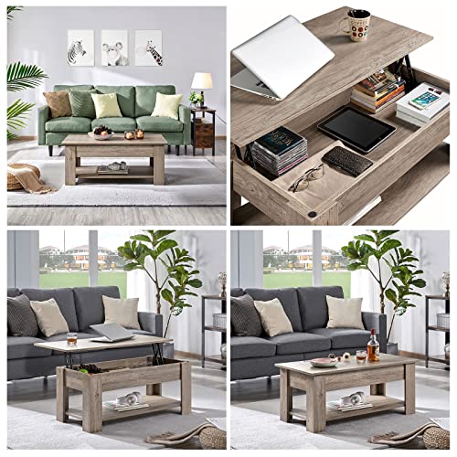 リフトトップデザイン:このコーヒーテーブルのテーブルトップは、快適な高さまで簡単に持ち上げることができ、ソファに座っているときに広々としたワークスペースやダイニング面を作成できます。頑丈な金属製のメカニズムにより、スムーズで簡単な操作が可能です。