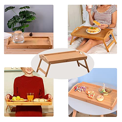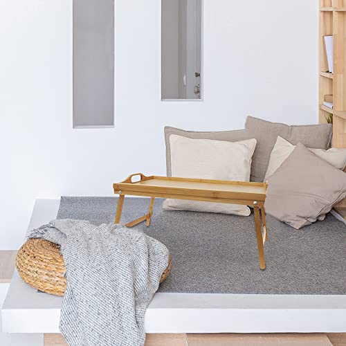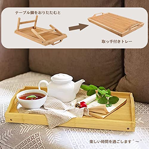 QINNKJIA 竹製 ローテーブル 折りたたみ式 ベッドテーブル 多機能 ちゃぶ台 座卓 トレーテーブル ハンドル付き