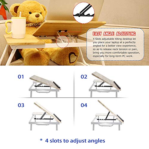 KAIDA ノードパソコンテーブル ベッドテーブル ベッド机 折りたたみミニテーブル ちゃぶ台 角度調節可能 木目