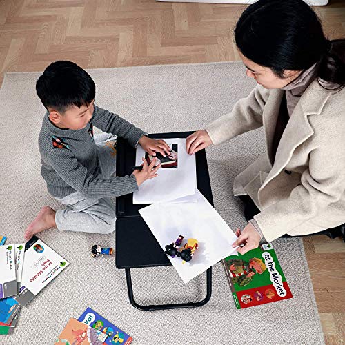 [多機能ローテーブル] 幅55cm×奥行32cm×高さ22cm この折りたたみミニテーブルはノートパソコンスタンドだけでなく、ベッドデスク、床面、ソファー上テーブル、ちゃぶ台、座卓、子供用ダイニングテーブル、学習デスク、スナック用のトレイ、ブック/タブレットスタンドに大活躍。オフィスで、オフィスデスクや机上台として使用すると、立って作業することができます。