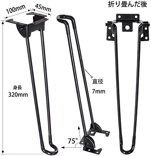 | 商品名 | 折りたたみ脚 テーブル 4本 折り畳み式 脚 ブラック つや消し 組み立て 傷・滑り防止 DIY 金具 座卓 用 ネジが |