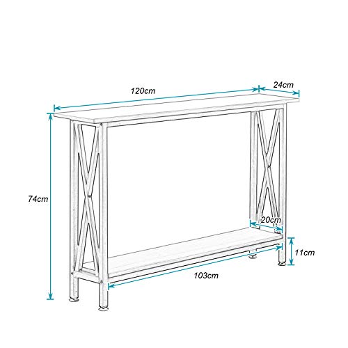 【2段トレー構造】このコンソールテーブルは十分なスペースを提供します。天板とオープンラックでお気に入りの本、鍵、花瓶、フォトフレーム、財布など小物を収納できます。