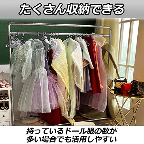 ドール服を収納できる:ドール服をかけられるミニハンガー20点とハンガーラック2点のセット品です。1/6サイズの着せ替え用ドール服を収納できます。ドール服をたくさんコレクションしている方にピッタリの商品です。