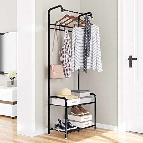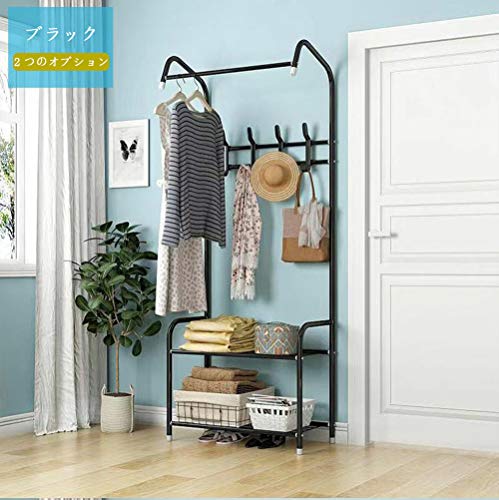 ?【2-in-1多機能収納】パイプハンガーと収納棚を一体に集めたハンガーラックです。洋服を吊るすための便利なオーバーヘッドバー、の空いたスペースにはバッグや履物を置くのに便利な2つの棚がついています。省スペースを有効活用したデザインで、これ一つでお部屋をスッキリ整頓できそうですね。