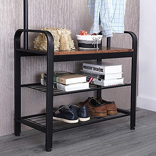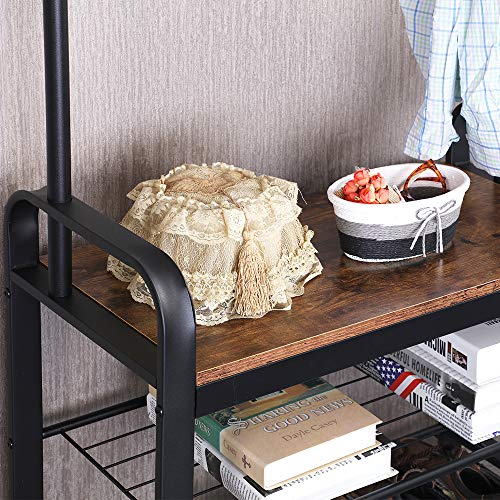 【完璧なデザイン】高品質の鉄棒と木目板を組み合わせることで、簡単に設置できるコートラック。固定式と可動式の2列のフックラックがあり、長尺物の高さ調節に便利です。子供や傘として;それはまた靴、バッグおよび他のアイテムのための3つの棚を含みます-一番上の棚は靴を履いている間座るのに十分安定しています。