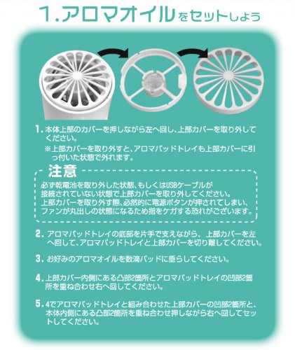 付属品:本体、USBケーブル、アロマパッド(3枚)、取扱説明書、保証書
