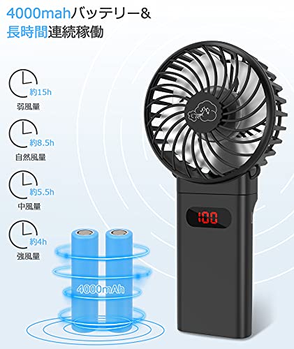 TAECCL 扇風機 手持ち 小型 超ミニ扇風機 usb充電式 折り畳み可 電池残量表示 静音 4000mAh大容量バッテリー 長時