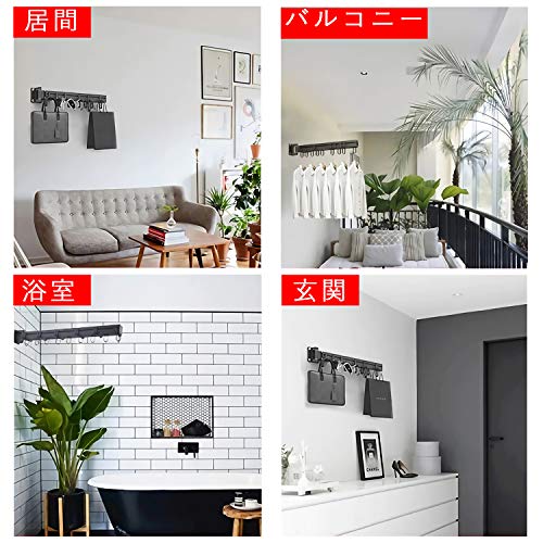 【折りたたみ機能】壁掛け式ハンガーは180度左右に自由回転でき、折り畳む機能があり、使わない時に折り畳むことができます。狭いところでも大丈夫です。多く場所を占めずに全シーンで使えます