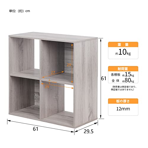 【商品仕様】サイズ:幅61cm 奥行29.5cm 高さ61cm。素材:パーティクルボード。本体重量:10kg。耐荷重(約):棚板1枚あたり10KG。