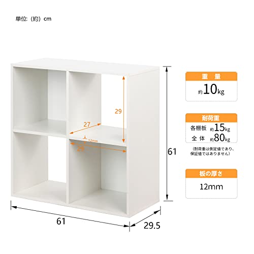 【商品仕様】サイズ:幅61cm 奥行29.5cm 高さ61cm。素材:パーティクルボード。本体重量:10kg。耐荷重(約):棚板1枚あたり10KG。