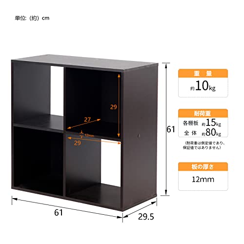 【商品仕様】サイズ:幅61cm 奥行29.5cm 高さ61cm。素材:パーティクルボード。本体重量:10kg。耐荷重(約):棚板1枚あたり10KG。